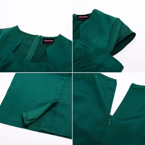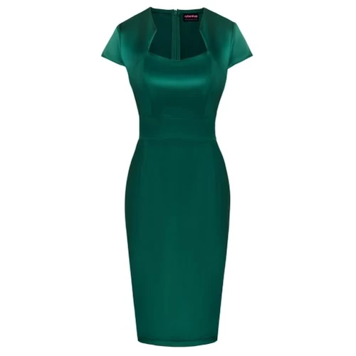 - A very elegant pencil dress, which features a cap sleeve, a centre back split, premium satin fabric, with a concealed zipper in the back.