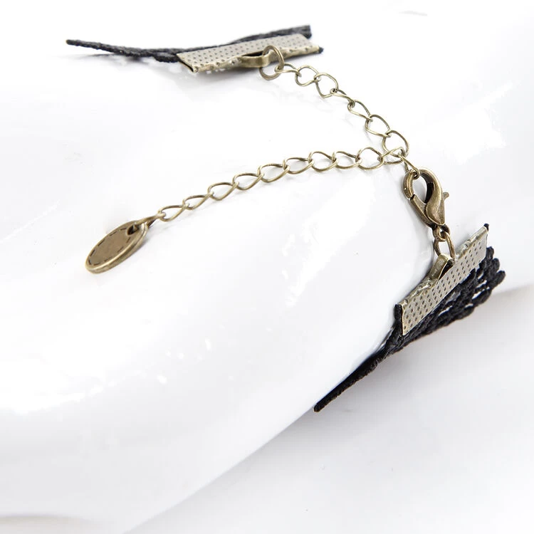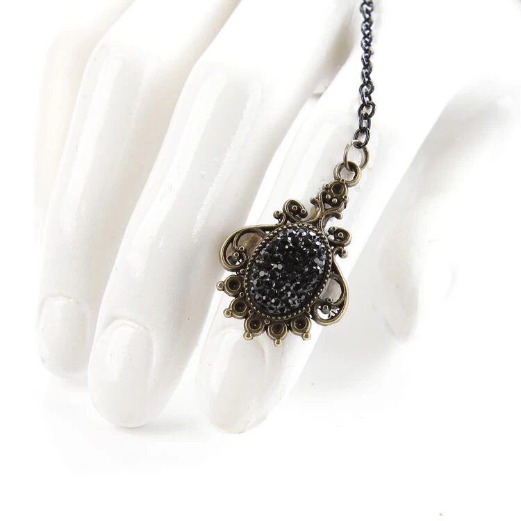 - Lace bracelet with beautiful black rhinestones and a ring that connects with a chain. One Size.