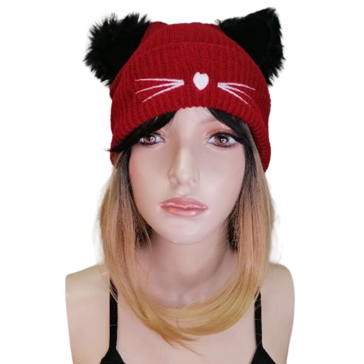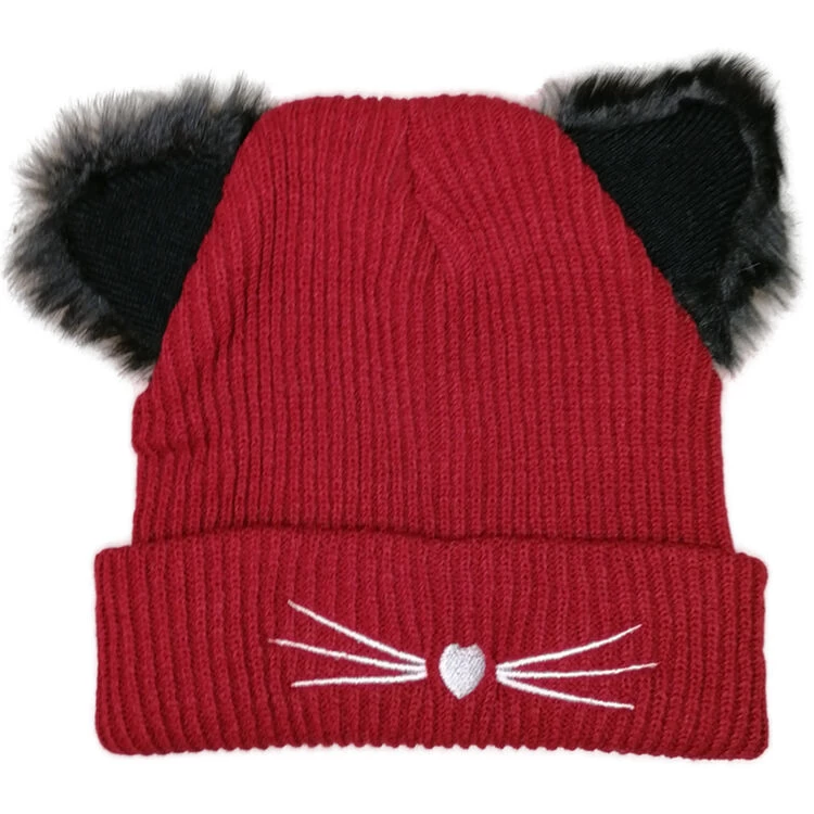 - Super cute dark red beanie with cat ears. One stretchy size.