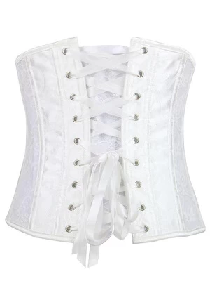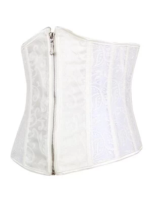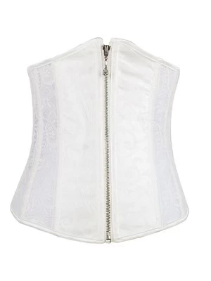 - Stylish white lace underbust corset, it ties up with ribbon at the back for easy adjusting and closes with a zipper on the front.
