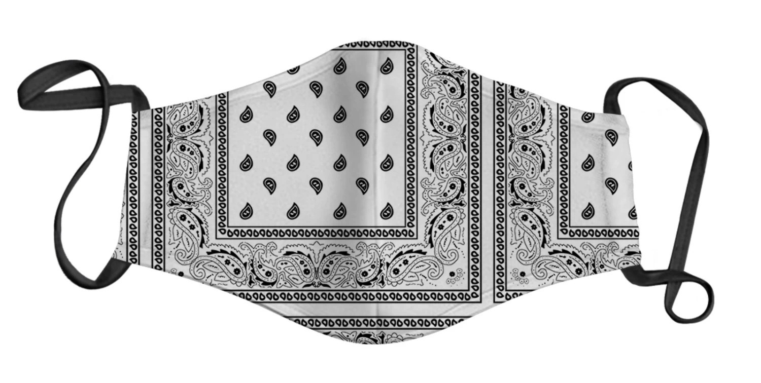 - Bandana White print face mask. One size