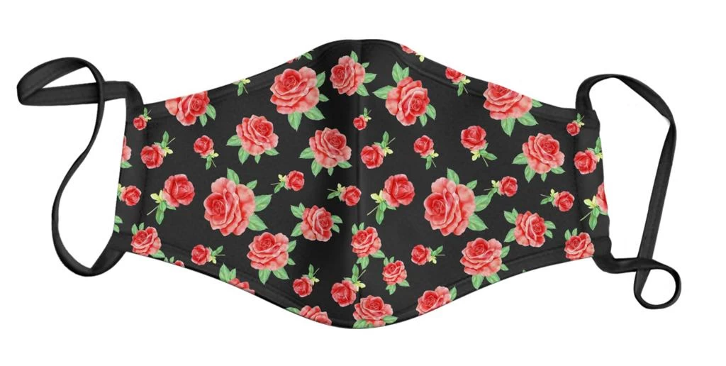 - Black Rose Garden print face mask. One size (This mask is not adult size approximate age 5-10 years old depending on face size)