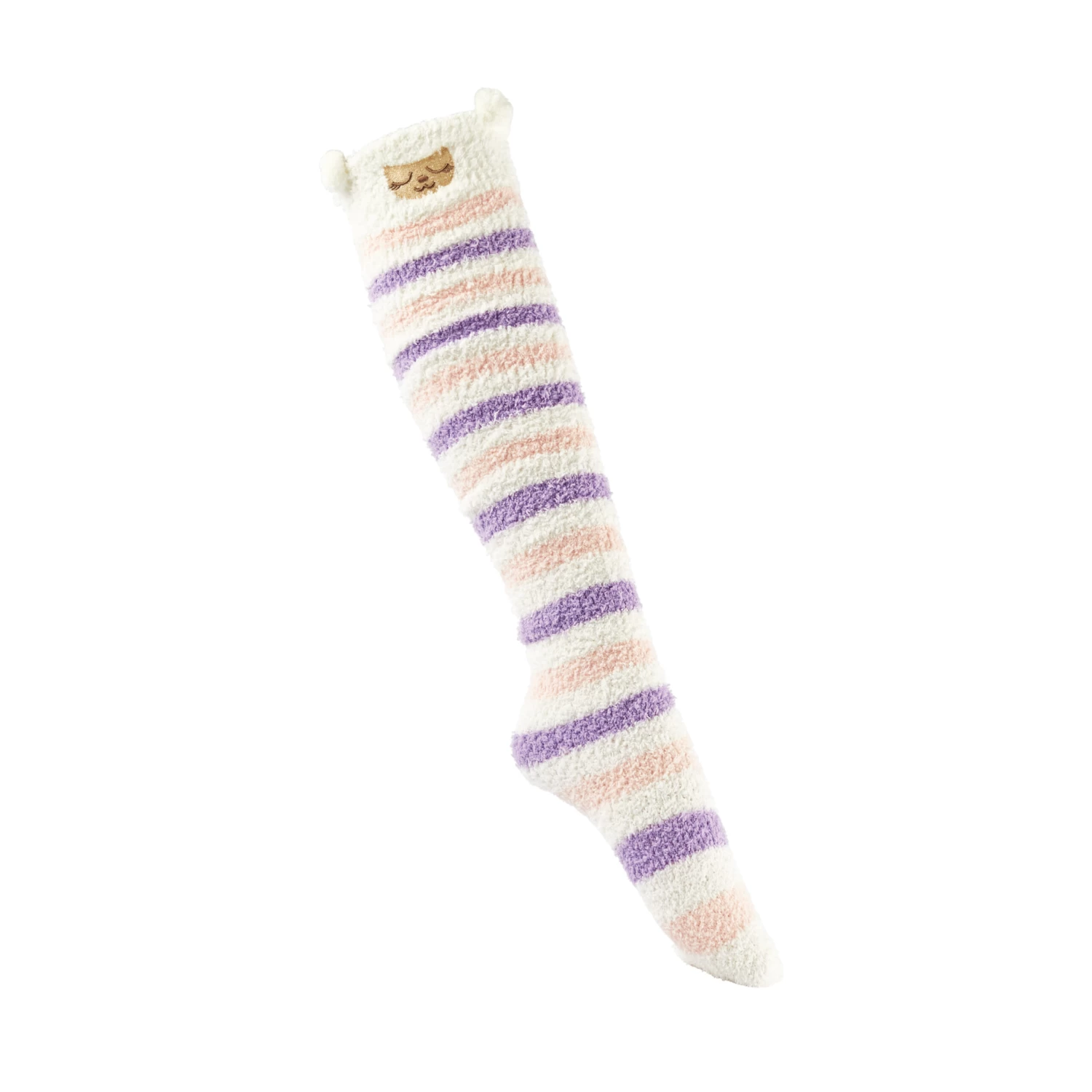 Furry Face Over The Knee Animal Socks β Purple Pink and White Stripe Socks