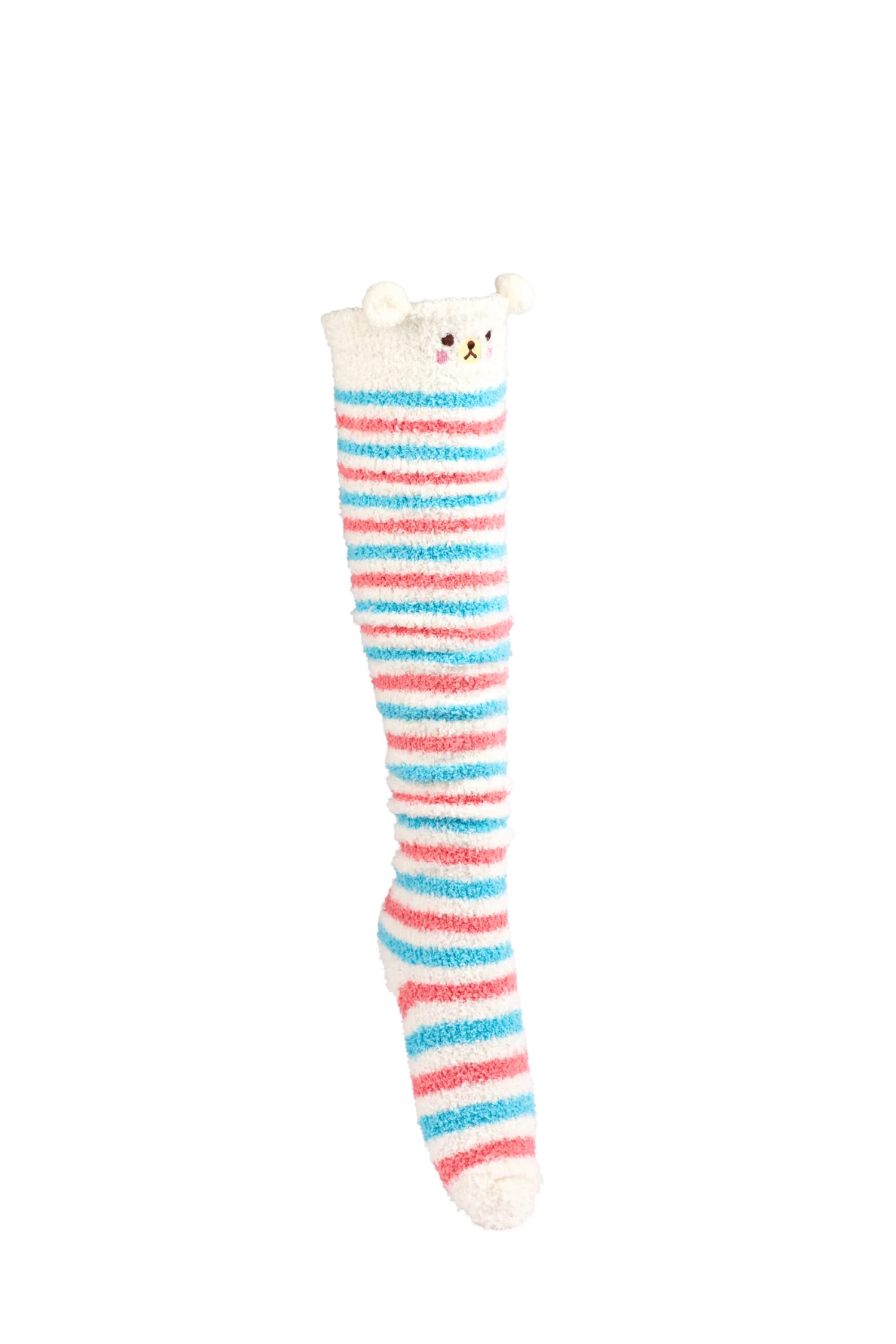 Furry Over The Knee Animal Socks β White/Blue/Salmon Stripe