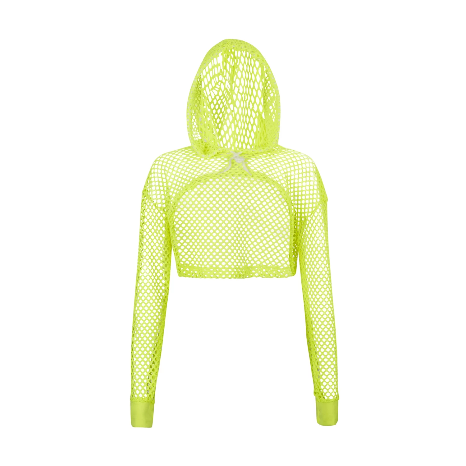 - Funky cut out mesh top with hood and draw string around bottom of top to pull in or leave loose.