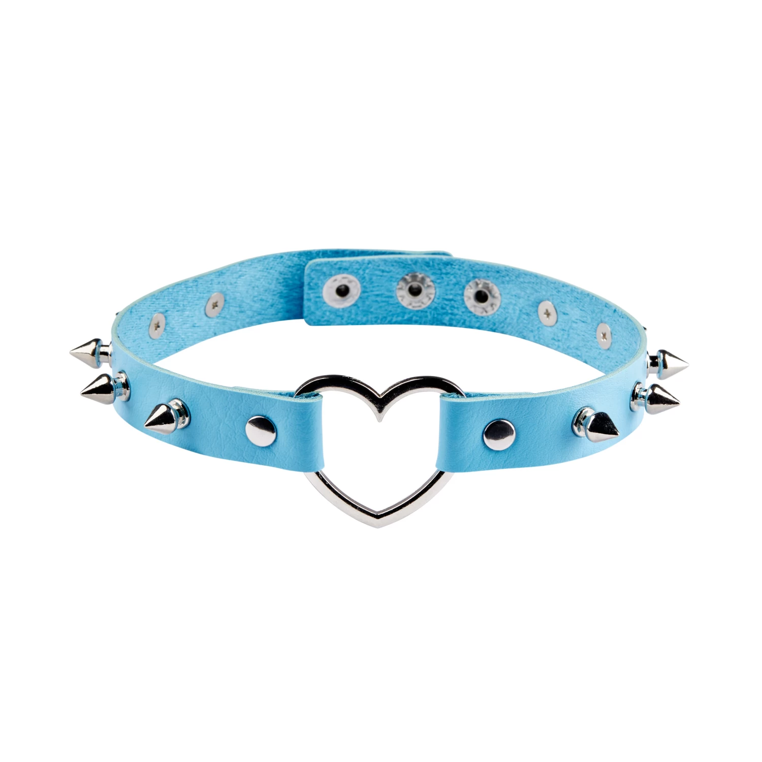 - Cute faux leather choker with heart and metal spikes. Adjustable.