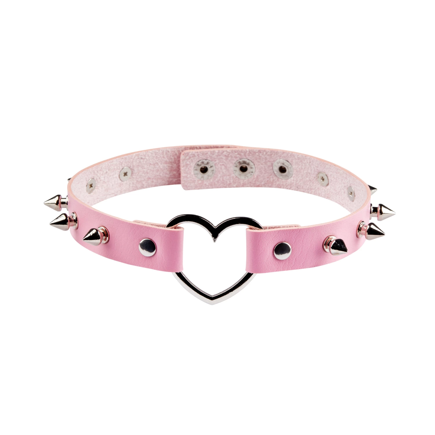 - Cute faux leather choker with heart and metal spikes. Adjustable.