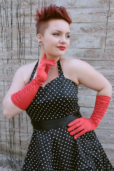 - Long red satin pleated gloves, perfect for dress up parties and dance costumes