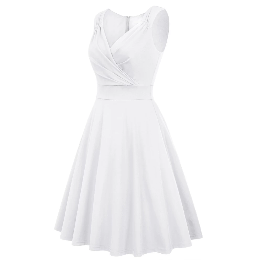 - A very elegant flare swing dress, which features a stylish v-neck with a wrap style at the front, a beautful sweet heart neck line, and monroe vintage look with a premium feel.
