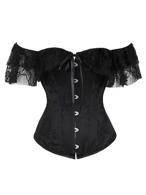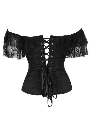 Nicolette – Black Overbust Corset with Lace Shoulder Sleeve