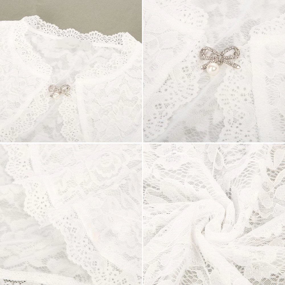 - Add some elegance to your outfit with this scalloped edging bolero in white colour. This accessory features a delicate lace pattern that frames your neckline beautifully. It also comes with a detachable broch that you can wear on the edging or on your clothing. Whether you want to dress up a casual look or add some flair to a formal one, this scalloped edging is a versatile and stylish choice.