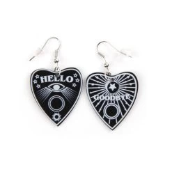 - Stunning ouija themed earrings. The material is PVC plastic and nickel-tested jewellery metal.