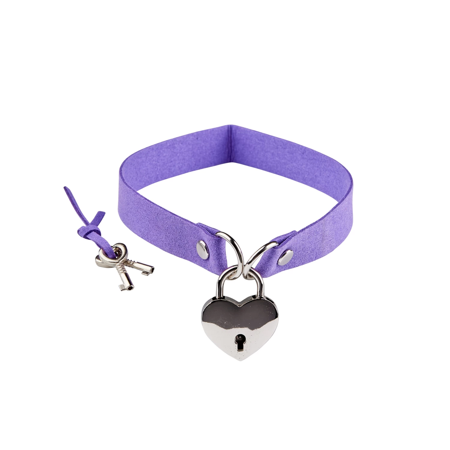 - Cute faux leather choker with an adjustable buckle fastening and silver coloured heart lock. Key is included.