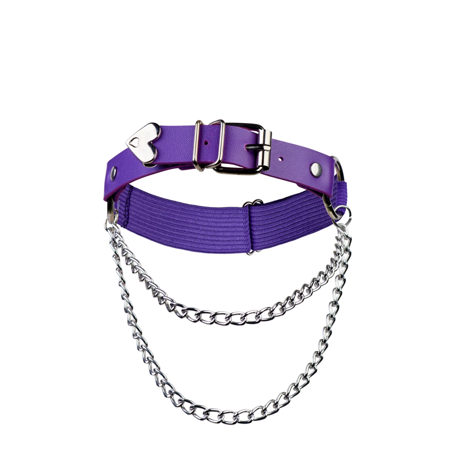Belladonna Purple Leg Garter with Buckle/Heart/Chain