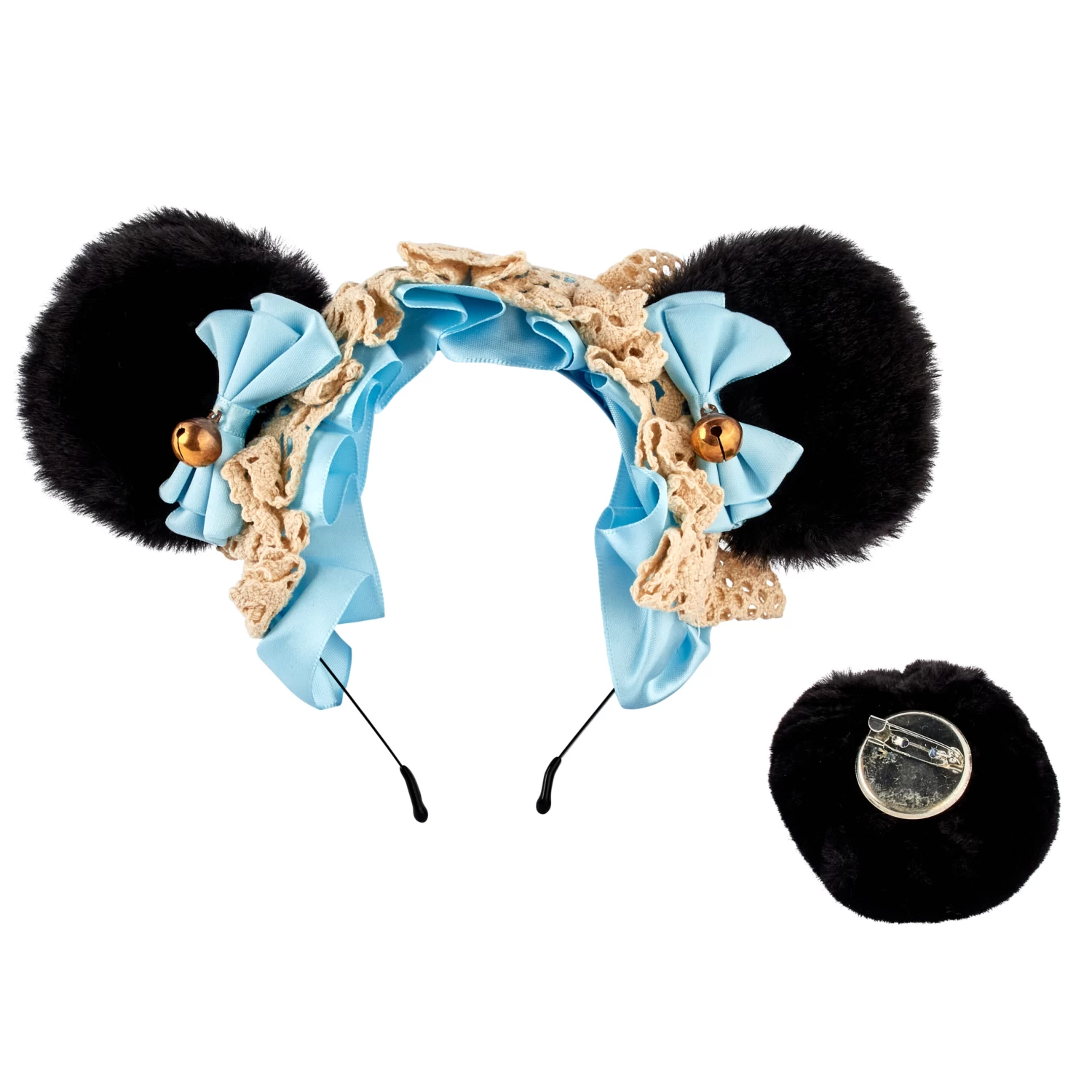 Teddy Bear Ear with Tail Headband – Black/Blue