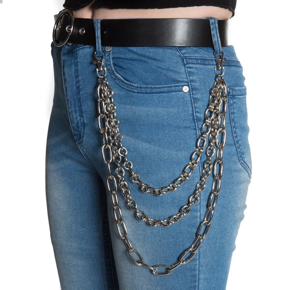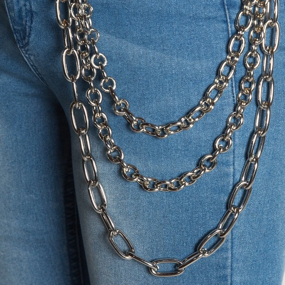 - Silver chain with 3 chains varying lenngth with large links.