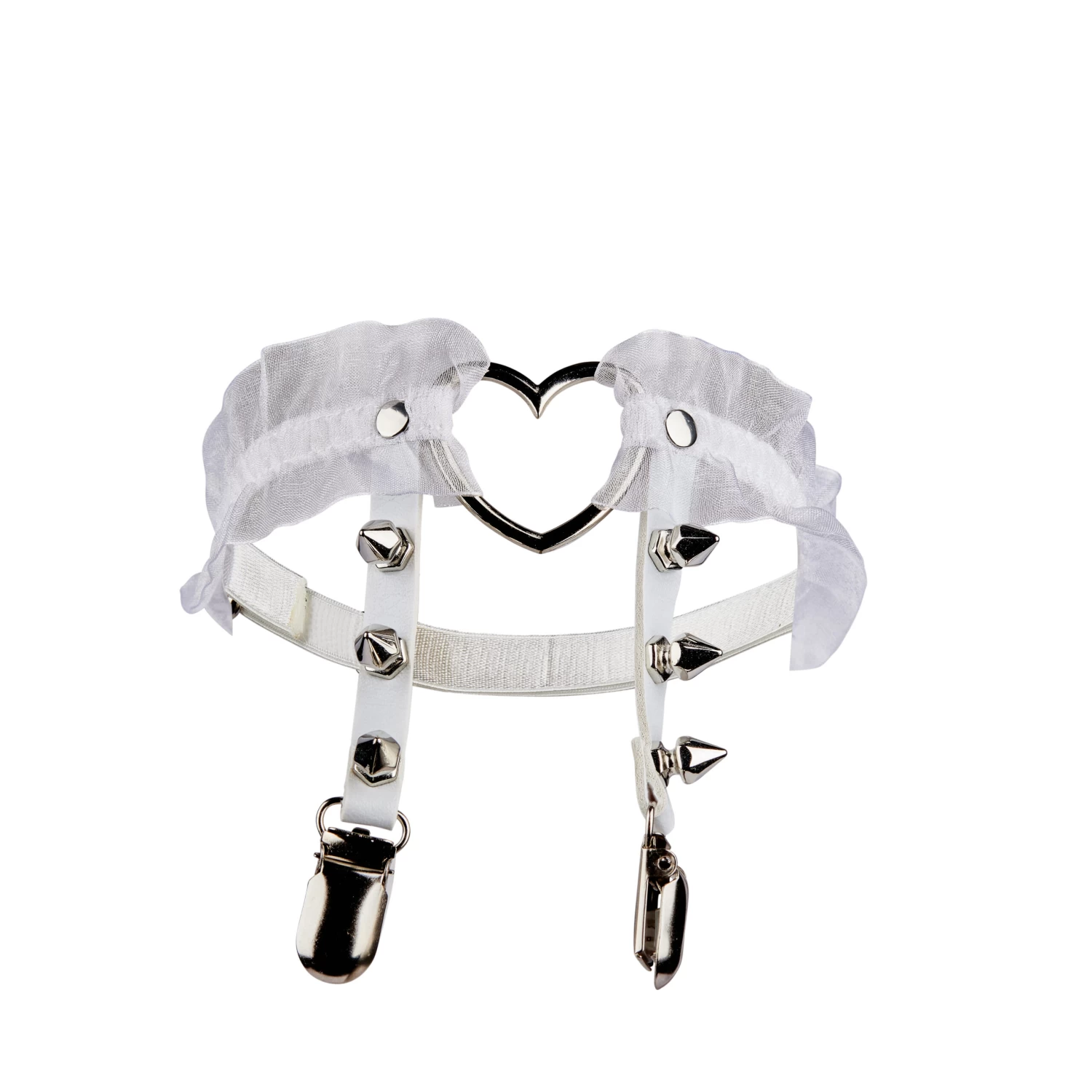 - Stylish garter with studs, metallic heart, beautiful ruffles and clips for stay ups.