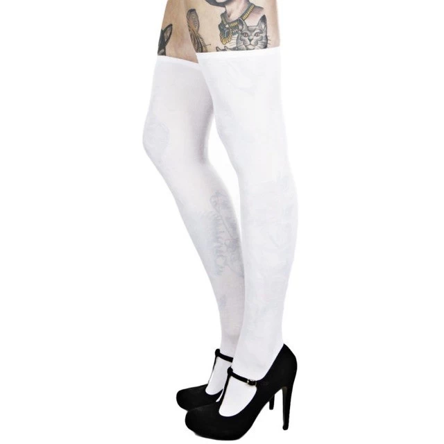 - One size, white, stylish over knee socks. Made of flexible material and fits for many size.