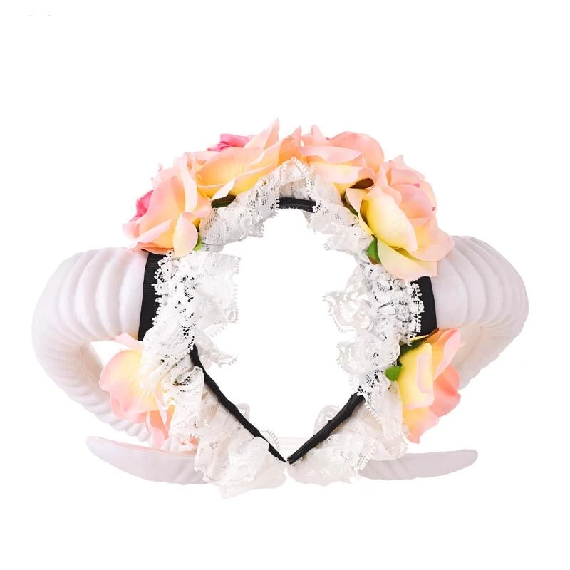 White Ram Horns With Lace And Roses/Pink/Peach/Yellow